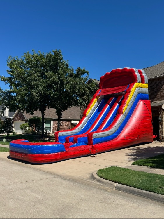 Make a splash with our 20-foot Mega Splash Double Lane Water Slide—perfect for parties, events, and summer fun in DFW! Fast, colorful, and thrilling for all ages. Rent today from Big Splash Party Rentals!